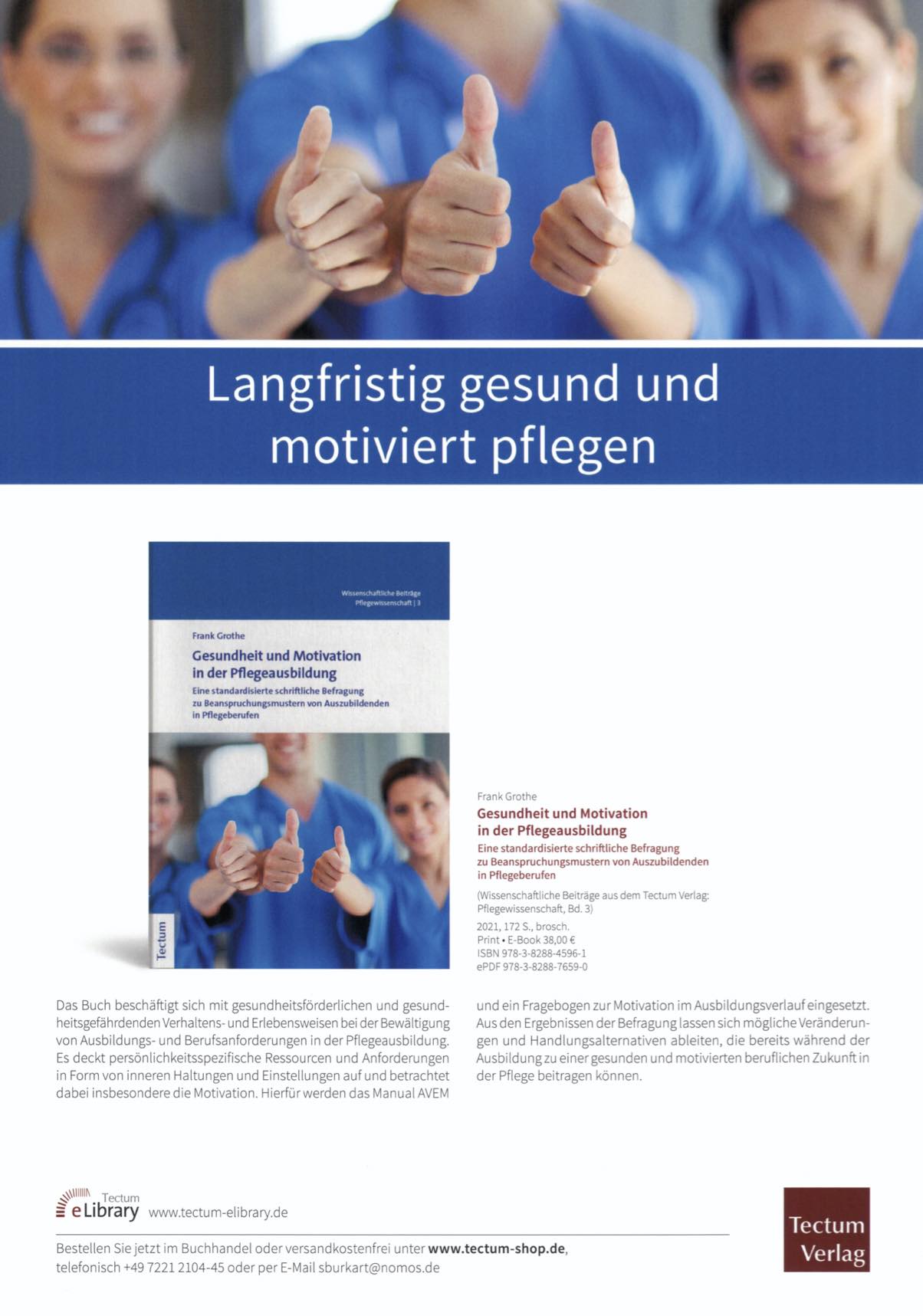 Frank Grothe macht mit seiner fundierten empirischen Untersuchung deutlich, worauf es in der Ausbildung von Pflegefachkräften zukünftig ankommt. Es geht um nichts Unbedeutenderes als die zu gewährleistende Voraussetzung eines zeitstabilen Verbleibs im Pflegeberuf.
